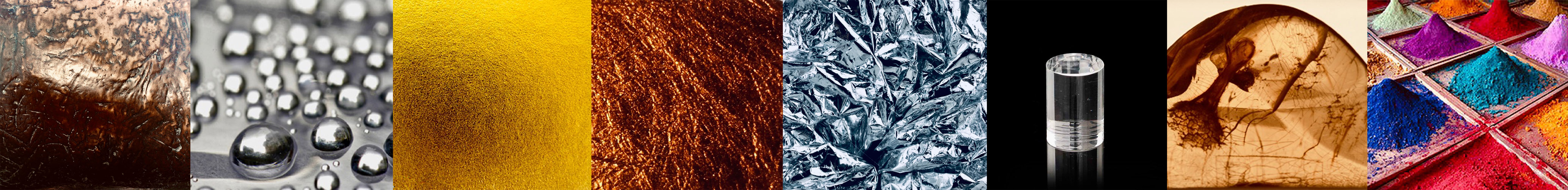 Bronzo, Argento, Oro, Resine sintetiche, Resine naturali, Pigmenti, Amore.